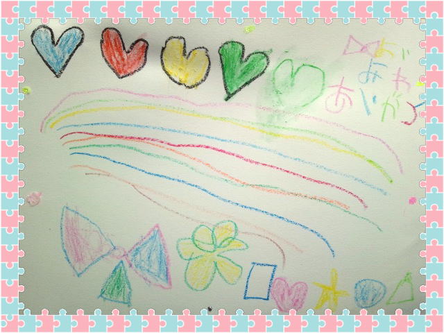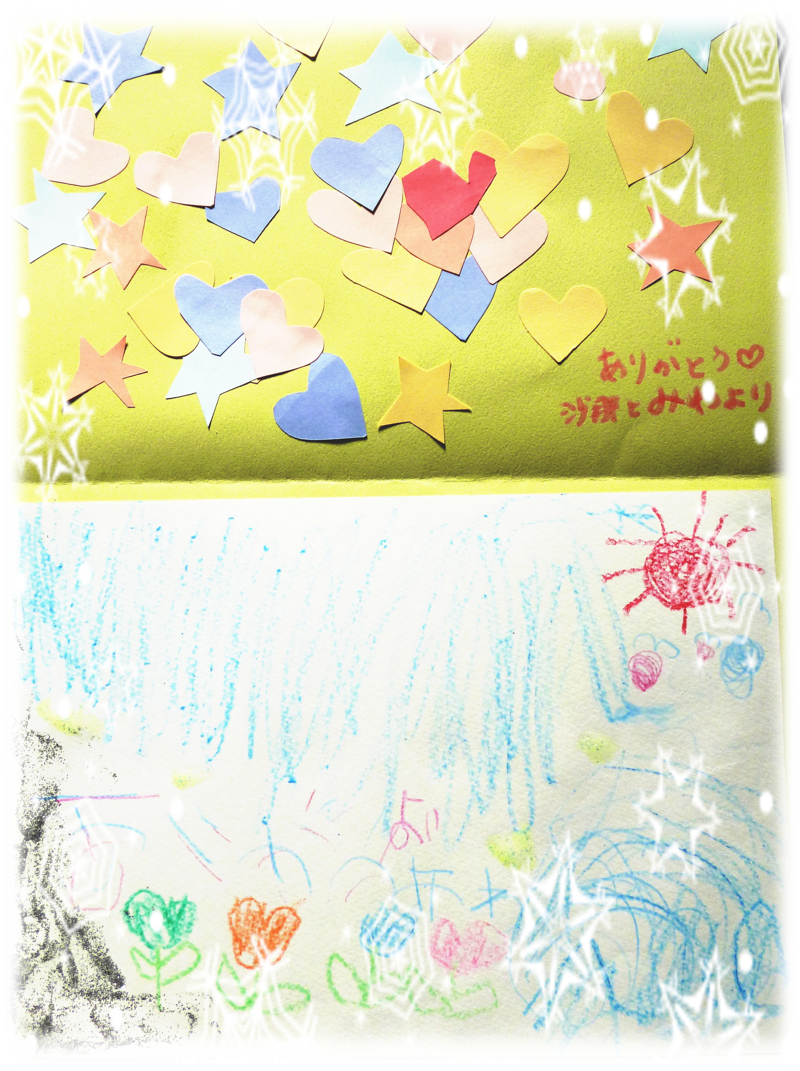 ママから、みわへ、ハートのかみかざり